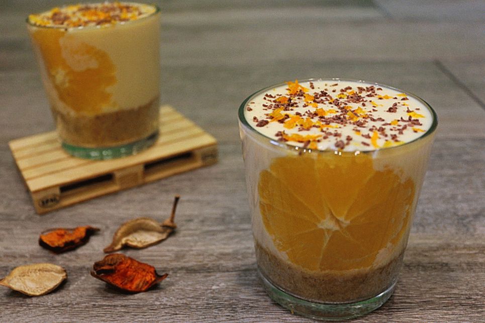 - Verteilen Sie am unteren Rand des Glases die Krümel von den Keksen. An der Seite An den Seiten des Glases sind orangefarbene Kreise zu sehen. Leerer Raum Tassen füllen die cremige Mischung. Schokodessert darüber streuen Krümel und Orangenschale.