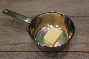 - Die Butter im Eimer schmelzen. Geschmolzene Butter in die Krümel der Kekse gießen, mischen.