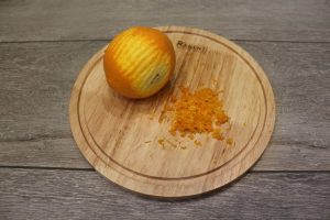 - Reiben Sie die Orangenschale auf einer feinen Reibe. Orange selbst in Kreise schneiden.