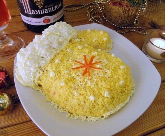 Mayonnaise dazugeben und die Zutaten mit einem Fausthandschuh formen Das fertige Gericht stellte sich wie auf dem Foto heraus.