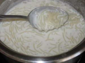 - Kochen Sie die Nudeln in 500 ml Salzwasser, bis sie zur Hälfte gar sind. 1 Liter Milch dazugeben und unter Rühren zähflüssig kochen Zustand der Nudeln.