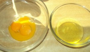 - Eigelb von Proteinen trennen. Schlage die Weißen. Eigelb mit Zucker mahlen.