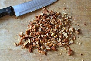 - Kombinieren Sie in einer großen Schüssel die Nudeln, geschlagenen Eier und Mandeln. Masse umrühren.