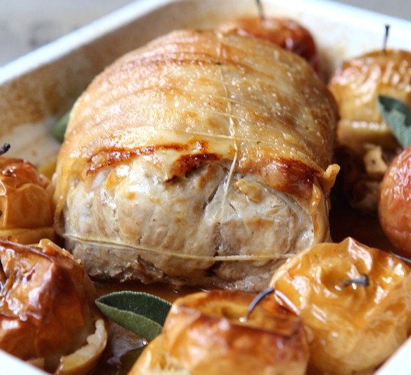 Die Äpfel waschen und ein kleines Stück damit schneiden gegenüberliegende Seite des Griffs. Wir nehmen das Backblech mit Schweinefleisch, Legen Sie die Äpfel mit dem abgeschnittenen Teil nach unten und senden Sie sie an Ofen für weitere 40 Minuten. Wir erhöhen die Temperatur auf 190 Grad. In Der Prozess des Backens des Fleisches wird in Brühe, Apfelsaft und eingeweicht Es fällt sehr zart und saftig aus.