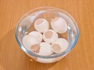- Habe rohe Eier mit einem stumpfen Ende gewaschen, um ein Loch zu machen Bei einem Durchmesser von ca. 2 cm den Inhalt ausgießen, er wird nicht benötigt.