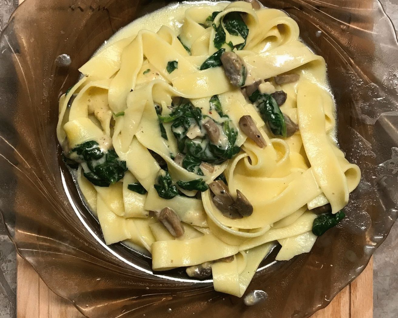 Pasta ist ein traditionelles Gericht der italienischen Küche. Es gibt eine Masse Möglichkeiten und Variationen der Zubereitung von Nudeln sowie Saucen dafür. In Dieses Rezept schlägt vor, hausgemachte leckere Pasta mit zu machen Pilze, Spinat und roher Mascarpone. Zarte Sauce Käse lässt dieses Gericht im Mund zergehen! Das Gericht ist sehr lecker, toll Geeignet zum Mittag- oder Abendessen.