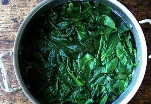 - Eine Minute bevor die Paste fertig ist, gießen Sie ein Glas Wasser ein. In Den Spinat in einen Topf geben. Einige Sekunden kochen lassen, Spinat sollte erweichen.