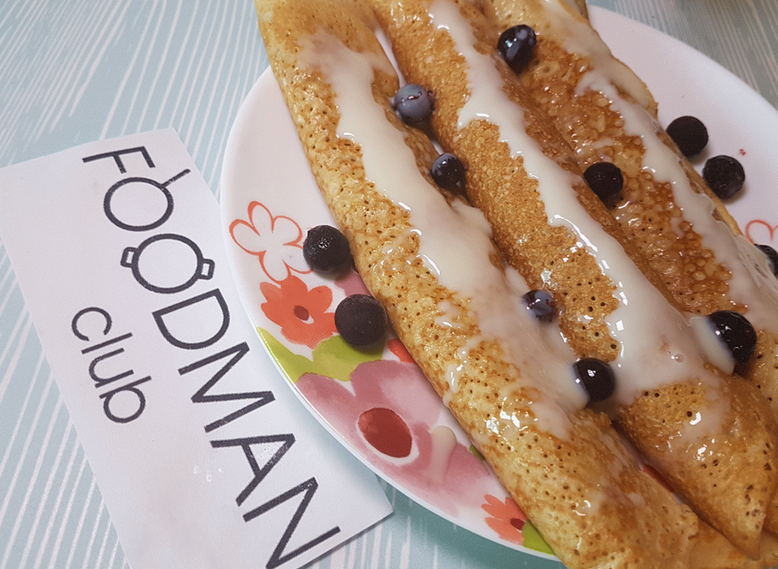 - Pfannkuchen in einer heißen Pfanne anbraten, bis sie braun sind.