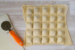 - Den Teig erneut kneten und in dünne Schichten rollen. Auf einen mit einem teelöffel bestreichen, die füllung mit kugeln darauf legen Abstand voneinander. Decken Sie die Oberseite mit einer zweiten Schicht. Zusammenhalten Ravioli, den Teig um die Füllung nehmen. Ravioli lockig oder geschnitten ein gewöhnliches Messer oder ein spezieller Ausstecher.