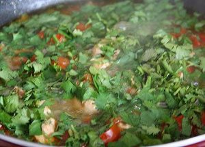 - Ein paar Minuten vor dem Einschlafen fein gehackt Grüns und mischen. Lass ein paar mehr unter dem Deckel brennen Minuten.