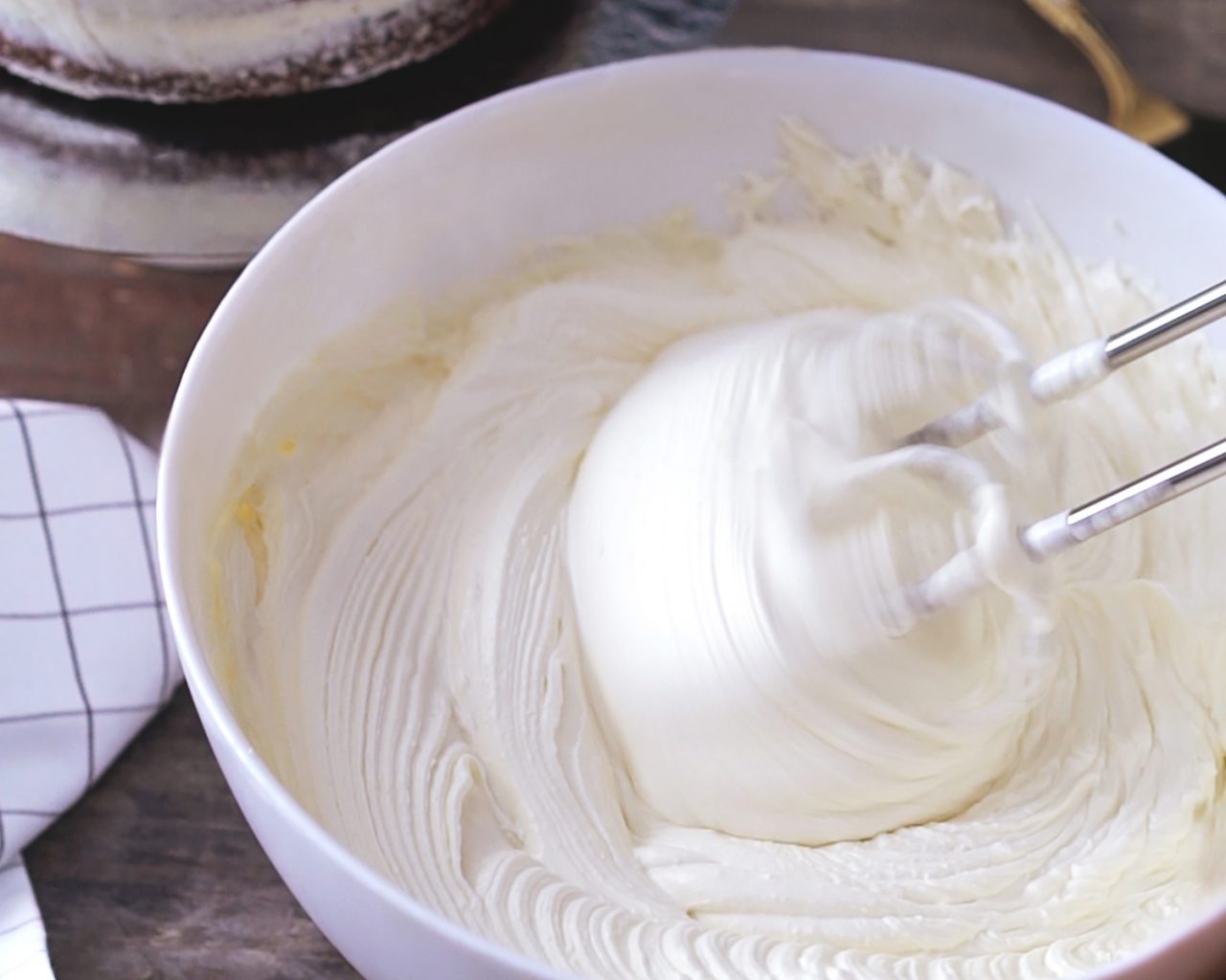 - Sahne schaumig schlagen. Fügen Sie Sahne und Gelatine dem Klumpen hinzu Masse mischen.
