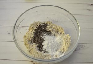 - Haferflocken bis Mehl mahlen. Hinzufügen Backpulver und Chiasamen. Solim.