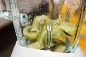 - Wir putzen die Kiwi und durchbrechen sie auch mit einem Saftmixer Zitrone.