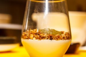 - Mit einer Schicht Quarkmousse abschließen und mit Beeren und Früchten dekorieren oder Müsli.