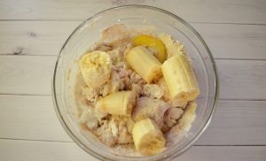 - Fügen Sie Banane hinzu. Mit einem Mixer glatt rühren.