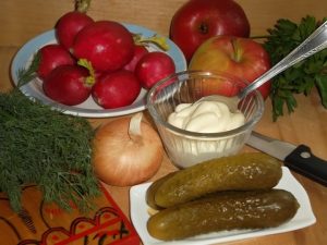 Ein köstlicher Salat mit Radieschen und Äpfeln ist zu Hause leicht zuzubereiten. dieses Rezept. Trotz einer eher komischen Kombination Zutaten, der Salat fällt wirklich lecker aus. Ich empfehle Machen Sie dies zu einem gesunden Gericht für sich und Ihre Lieben.