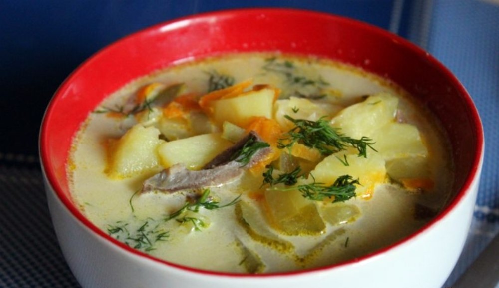 - Sauerrahm in die Suppe geben und umrühren, zum Kochen bringen und mach das Feuer aus.