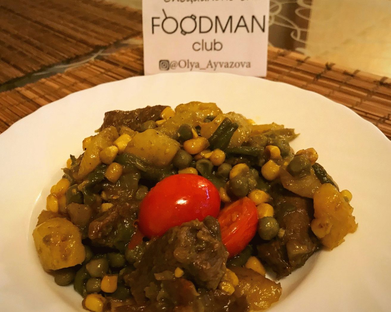 - Dann fügen Sie Erbsen, Mais und Bohnen in die Pfanne. Stew 10-12 Minuten, bis fertig.