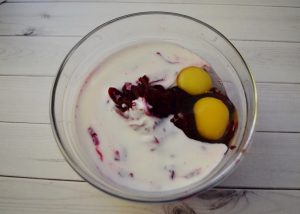 - Rüben reiben und mit Kefir und Eiern vermengen.