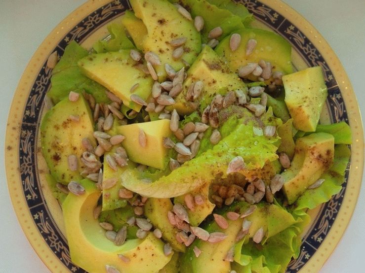 - Ein schneller Salat mit Avocado und Samen ist fertig, Sie können auf dienen Tisch. Guten Appetit!