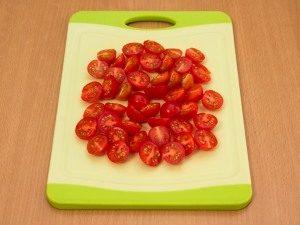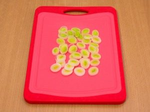 - Kirsche waschen, halbieren, Lauch in Ringe schneiden.