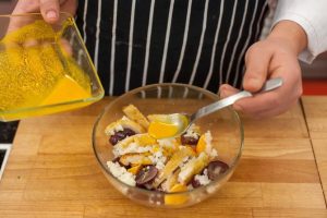 - Reis kochen Mandarinen schälen und in Scheiben schneiden. Trauben in drei Teile schneiden.