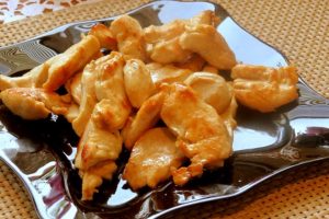 - Hähnchenfilet in Würfel schneiden, in einer Pfanne braten bis bereitschaft und legte es auf einen teller.