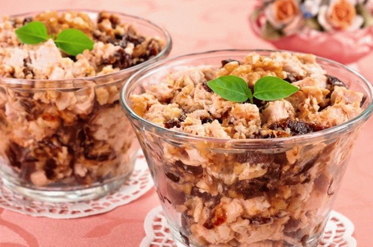 - In einer Schüssel Fleisch, Pflaumen, Nüsse mischen.
