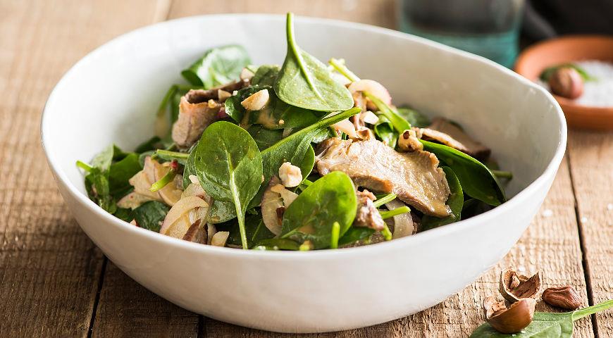 Wenn Sie nach dem Mittag- oder Abendessen Fleisch essen, wenden Sie sich bitte an Sie können ein originelles Gericht machen. Ich rate Ihnen, zu Hause köstlich zu kochen Salat mit Lammkeule und Haselnüssen.