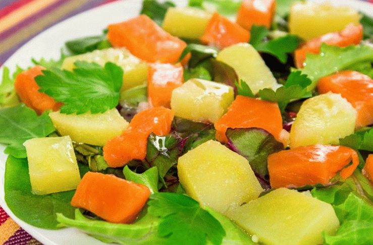 Die perfekte Kombination aus Salzfisch und Kartoffeln! Und mit Knoblauch, ja grüner salat – du wirst deine finger lecken! Köstlicher Salat kochen zu hause zum abendessen.