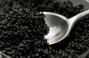 Öffnen Sie den schwarzen Kaviar und geben Sie eine kleine Menge in die Butter. Schwarzer Kaviar kann auf einem Baguette verteilt oder ein Bund übrig gelassen werden.