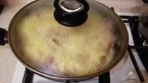 - Die Pfanne mit Pflanzenöl schmieren und den Teig auslegen.