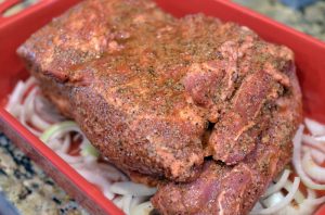 In einer Schüssel Salz, Flüssigrauch, Knoblauchpulver und Pfeffer mischen. Schweinekeule waschen, allseitig vorbereiten aromatische Mischung und Zwiebel verteilen. Gießen Sie Wasser in die Form (1 Glas) und in den vorgeheizten Backofen bei 180 Grad um 2,5 schicken Stunden. Entfernen Sie das Fleisch regelmäßig und gießen Sie Saft von der Unterseite.