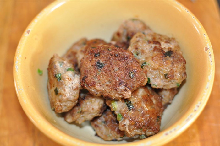 Duftende Frikadellen mit Frühlingszwiebeln schmecken heiß bei Ihrer Liebsten garnieren und leichte Gemüsesalate.