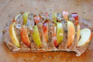 Wir nehmen die duftende saftige Lende mit Äpfeln heraus, dekorieren sie mit Petersilie und sofort servieren.