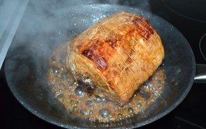 Nach 40 Minuten die Lende entfernen, anzünden und anbraten Bei mittlerer Hitze wenden, bis die Sauce dickflüssig ist. Dann vom netz nehmen, schneiden und mit der so entstandenen sauce servieren.