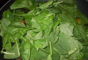 - Fügen Sie Spinat zu den Tomaten hinzu, kochen Sie, bis der Spinat reduziert ist in der Größe drei bis viermal.