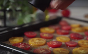 - Wir verteilen die Tomaten auf einem Backblech in einer Schicht, Salz darauf, pfeffern und reichlich mit olivenöl bestreuen in den auf 220 grad vorgeheizten ofen geben für 15-20 Minuten.