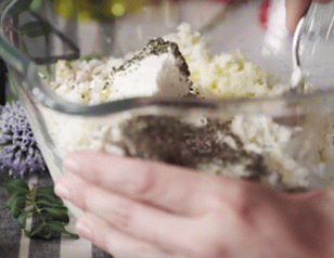 - Die Masse wird in hitzebeständiger Form gleichmäßig verteilt.