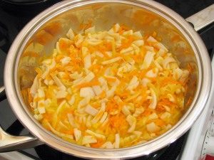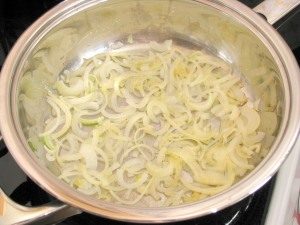 - Die Zwiebel in einem Topf in Pflanzenöl anbraten.