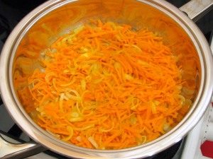 - Karotten, Zwiebeln, schälen, waschen. Zwiebel dünn schneiden Halbringe. Karotten durch eine mittlere Reibe mahlen.