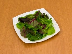 - Wir sammeln den Salat – geben den Salat auf die Schüssel.