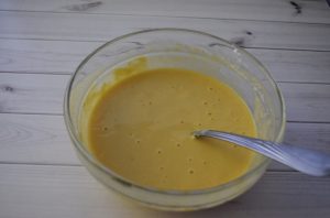 - Gießen Sie die Hälfte des Teigs in eine spezielle Silikonform, gefolgt von Füllung auslegen, restlichen Teig einfüllen. Backen bei 180 Grad vierzig Minuten. Backofen vorheizen.