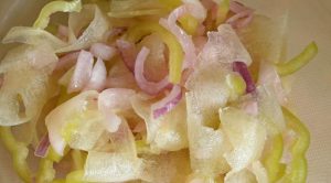 Viele finden diesen köstlichen und ungewöhnlichen Salat aus Melone, Zwiebel und Grüne Paprikas, die nur zu Hause kochen, sind ziemlich seltsam aufgrund scheinbar inkompatibler Inhaltsstoffe. Aber so ein Salat es lohnt sich auf jeden fall, es wird mit seinem original begeistern süß-saurer Geschmack! Zusätzlich 1 Stunde einlegen Zwiebeln einlegen.