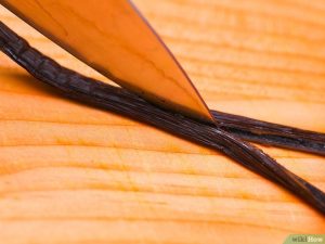 Schneiden Sie die Vanilleschote in zwei Hälften, entfernen Sie die Kerne und legen Sie sie hinein in einer Pfanne zu anderen Zutaten zusammen mit Anis.