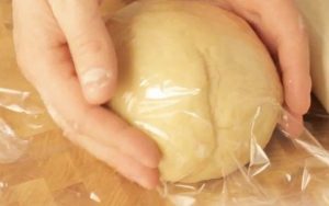 - Zu einer Kugel rollen, mit einer Folie umwickeln und 40 Minuten ruhen lassen.
