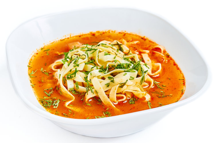 - Die Masse mit Tomatensauce mischen und mit Wasser auf die gewünschte Menge verdünnen Dichten. Fügen Sie gemahlenen Pfeffer für Aroma und Salz mit hinzu zu schmecken. Den Teig zu einer Schicht mit einer Dicke von ca. 2 mm ausrollen. Gießen Mehl in eine Rolle rollen und in Nudeln schneiden.