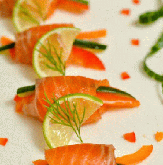 - Lachs sollte in dünne Scheiben geschnitten werden.