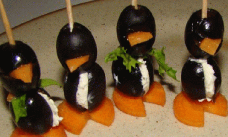 Köstliche Pinguine können wie zu Hause gekocht werden ein eigenständiger Snack, oder Sie können sie auf Salaten “pflanzen”, an den Feiertagstisch gemacht.