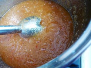 - Stanzen Sie die resultierende Masse mit einem Mixer glatt Konsistenz.